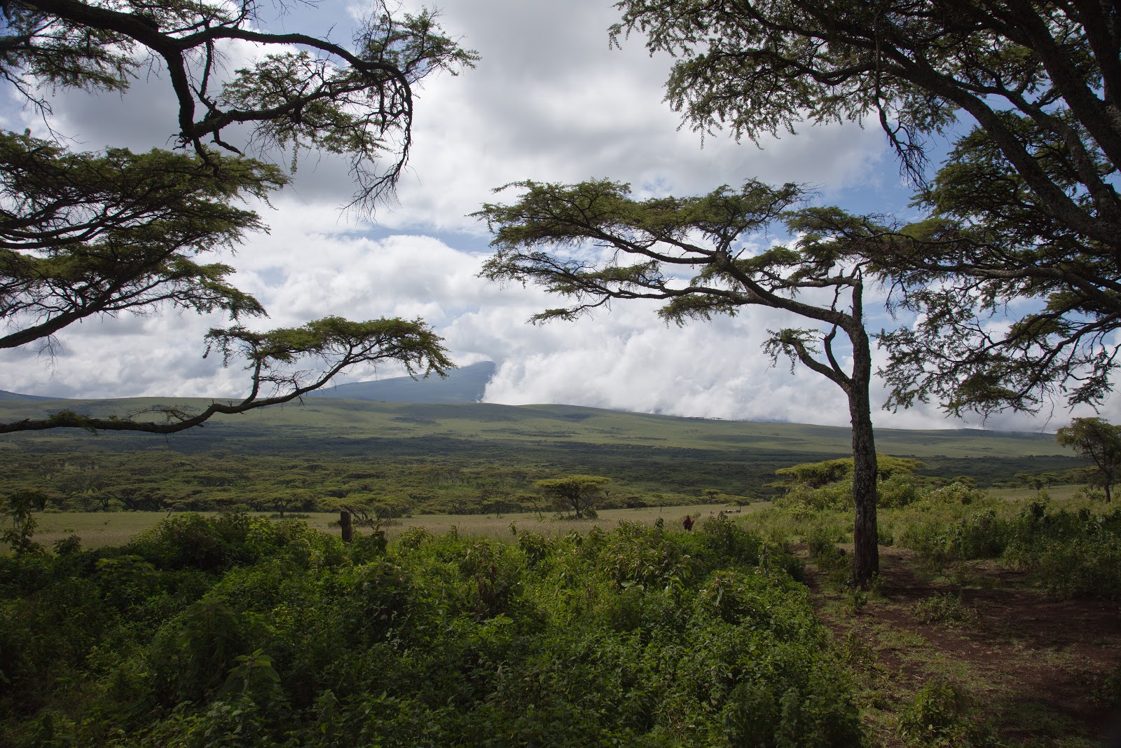 There are tens and tens of thousands of animals, very occasional small tree. Then into wooded land, acacia, gradually giving way to euphorbia candelabra and shrubs.