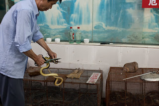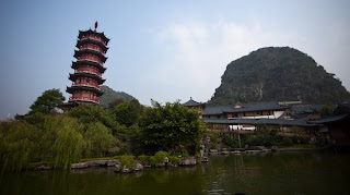 Here the pace slowed down a little (after a whirlwind trip with so much to see and the only down time being in the car through mad traffic on poor roads). Our fearless guide has had our days programmed for 12, 14, even 18 hrs, and has barely left our side). Once witnessing the dispatching of the rat, we relaxed on one of their balcony dining areas, beer and water to hand, and read, listened to the birds and cicadas, or dozed in the balmy breeze. After a spot of fishing on the Li river yielded no reward, just an hour of getting hot and thirsty