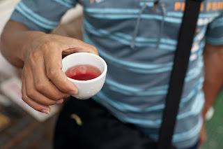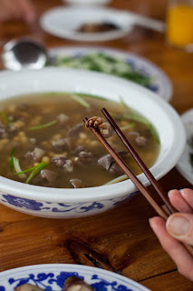 We skirted Yangshuo on our way to see a couple of the local tourist sites. First the Big Banyan tree, a 1400 year old tree. This one with a fence around it so you can’t climb it, although people were still doing lots of touching. We were there by 8.10, but the monkey men were already there, and the crowds were building. After a photo op with Tory and her Simian friends, we were then on to Steve’s cousins house where he has a restaurant on top of a hill in the country side. The hero of the meal was a still living Bamboo rat in his little trap caught whilst we were ballooning. Restaurants in town do not have a license to serve this gopher type animal, so this was a special treat. After photos, we were asked if we wanted to see it killed – ‘Noooooo’! We did however, catch a glimpse of the bamboo rat being blowtorchedto de-hair the critter before before being tossed in the wok.