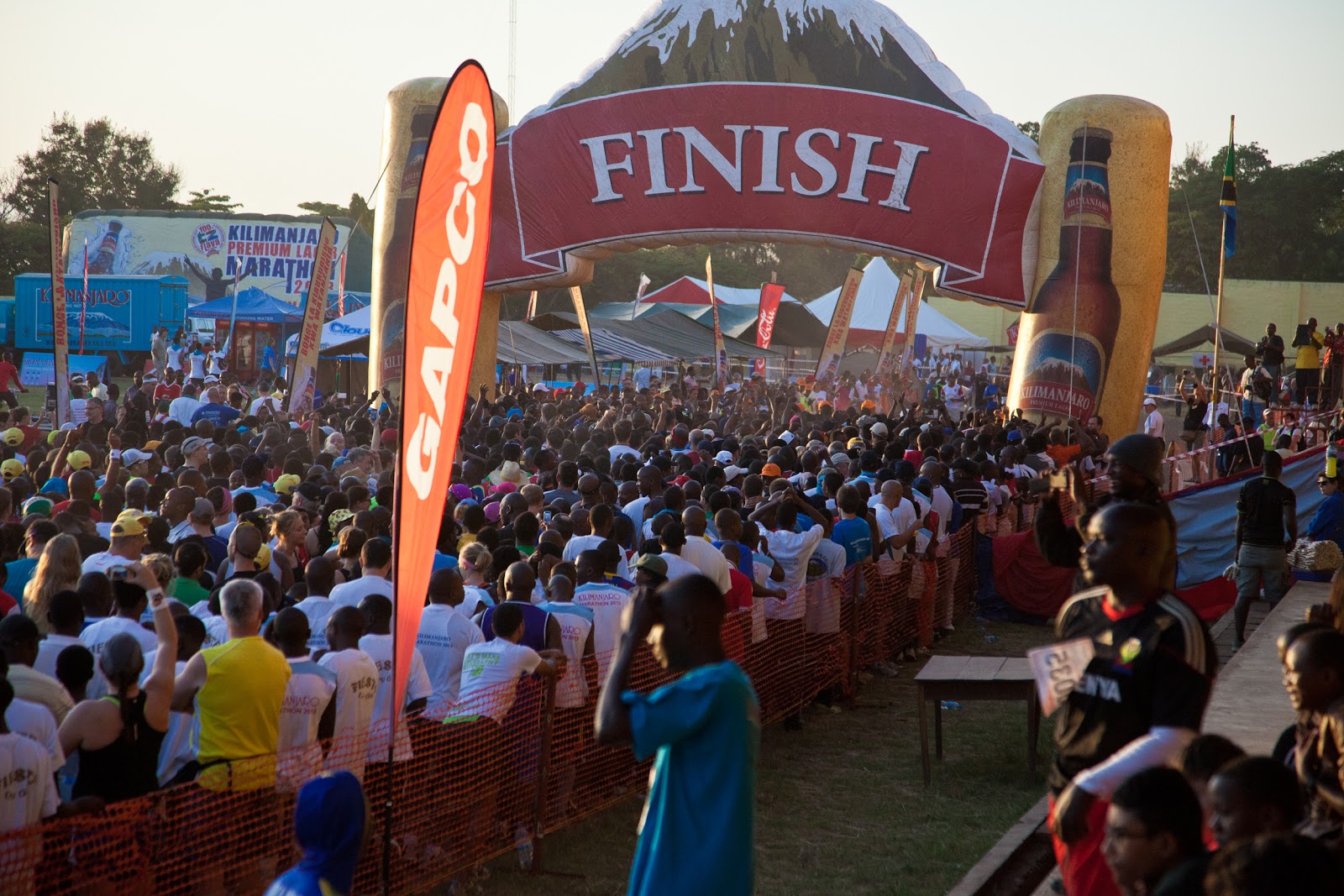 It was so cool to see the startling crowded with scrawny fast Kenyans and Tanzanians, who sprinted off the start to get the advantage on the bend. The nature of the course with two ‘in and out’ legs meant that we could see the lead pack and eventual winner streak past through the morning. I settled in to my style – waving, high fiving kids, being laughed at by women, comments from men (I choose to believe they were just cheering), as I occasionally curtseyed in return. I suspect many of them had never seen anything quite like me 😉 I was rocking my NYM outfit – named T shirt and Jodi Lee Foundation tutu, getting a few call outs for ‘Toe Ree’ and thoroughly enjoying myself. It was a cool flat run for most of the first 12-14k, out of town and back again, then a loop through Moshi which included small hills. Several thousand people were lining the street the whole way, creating a very festive atmosphere. I was joined by groups of kids for kilometers at a time, and at one stage, by a man on a bike for over 10k!